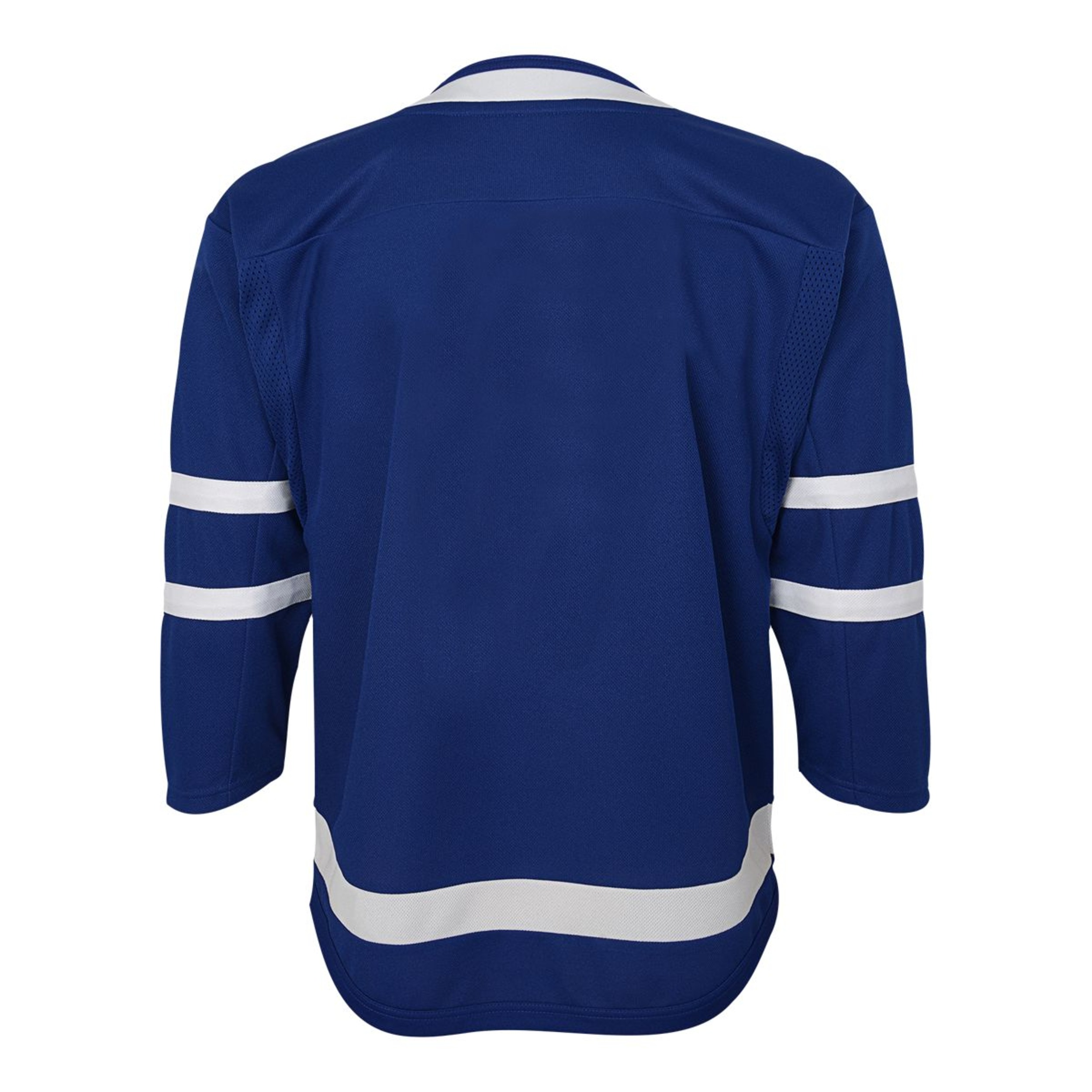 The Toronto Maple Leafs Toddler Replica Jersey Hockey allows the youngest fans to proudly support their favorite NHL team. This officially licensed replica jersey features the same direct-sew embroidered twill crest on the chest and twill patches on the shoulders as the jerseys worn by the Toronto Maple Leafs players. With a 2-way stretch polyester pique body and comfortable polyester interlock knit collar, this toddler Leafs Jersey enables easy movement and cozy wear for active toddlers.
