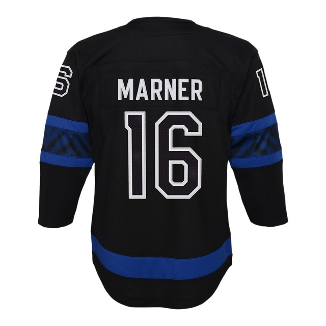 The Toronto Maple Leafs 3rd Alternate jersey, collaborated with Justin Bieber and drew house, provides radical design with reversible features that bring innovation to the NHL jersey. The fashion forward Black and Blue color scheme are youthful with design elements that showcase the Maple Leafs and City of Toronto. Complete with Mitch Mariner #16 player name and number. Worn either way, this jerseys is great for any young Leafs fan. Youth 8-20 size range.