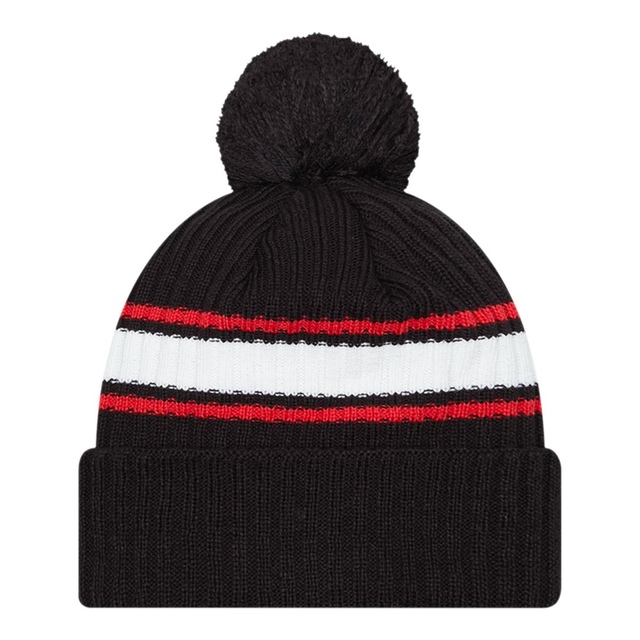 This fleece-lined, basketball-themed winter hat keeps your head warm and stylish while cheering on the Toronto Raptors. The black ribbed knit hat has team color striping woven into the crown and a large Raptors logo embroidered on the folded cuff. Lined with soft fleece, this cozy hat will keep you toasty and cheerful no matter how cold the arena gets during games.