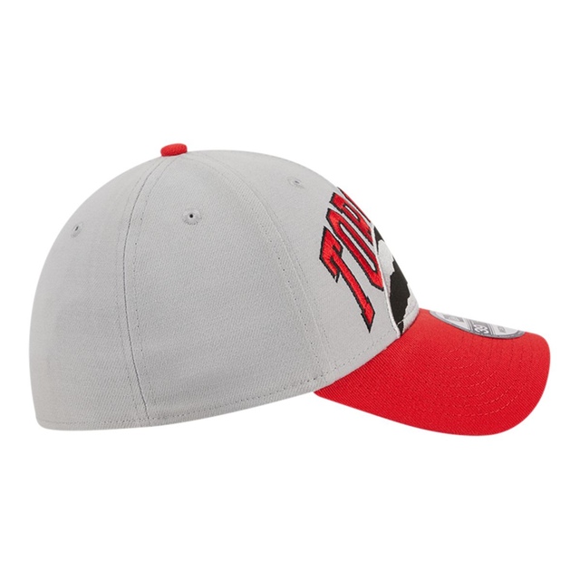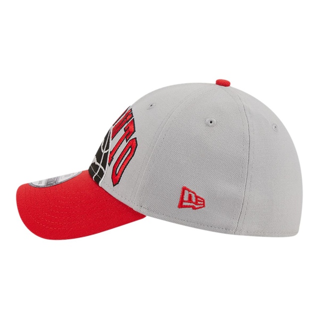 This Toronto Raptors NBA Tip-Off 39THIRTY Stretch fit cap features an embroidered oversized, cropped, Raptors logo embroidered under city wordmark at the front panels, and the official NBA Logoman embroidered at the rear. Stretch poly fabrication throughout the grey colored crown. Visor is team colour with grey undervisor.