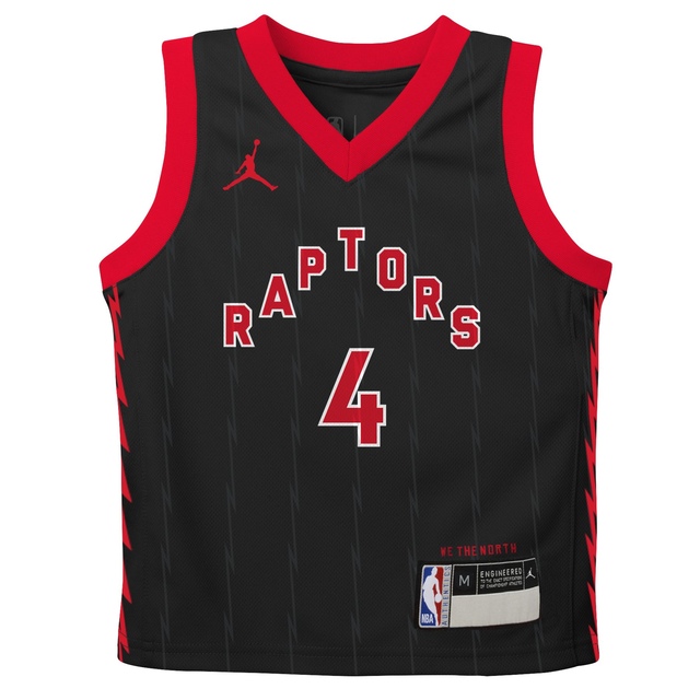 The Toronto Raptors Nike Toddler Scottie Barnes Statement Jersey brings game-day style to your little fan. Inspired by the on-court NBA jersey, it features bold team colours and the Raptors' iconic design. Made from premium flat-back mesh fabric, this jersey offers a comfortable fit and showcases Scottie Barnes’ name and number in screen print.