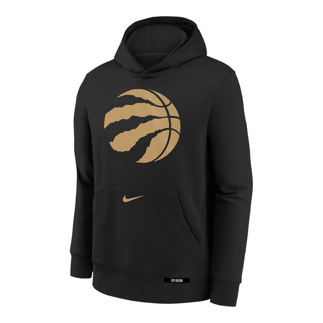 The Toronto Raptors Nike Youth City Edition Club Hoodie celebrates the team's 30th anniversary. This cozy fleece hoodie features a Raptors graphic on the chest, blending comfort and style. Made from a soft cotton-polyester blend, it’s perfect for young fans to show support for their favourite team.