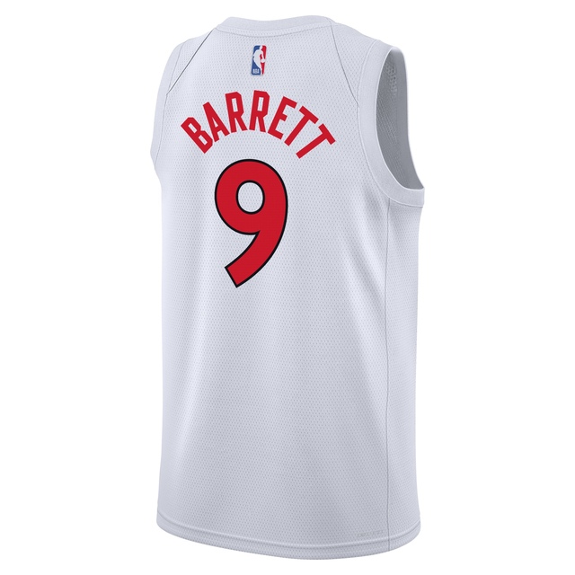 The Toronto Raptors Nike Youth RJ Barrett Association Jersey brings pro-level style to young fans. Inspired by NBA pros, it features the Raptors' bold design and iconic identity. Crafted from premium double-knit mesh fabric, it offers a comfortable fit with heat-applied player name and number. Equipped with Dri-FIT technology and the "WE THE NORTH" mantra, this jersey combines comfort with authentic NBA details.