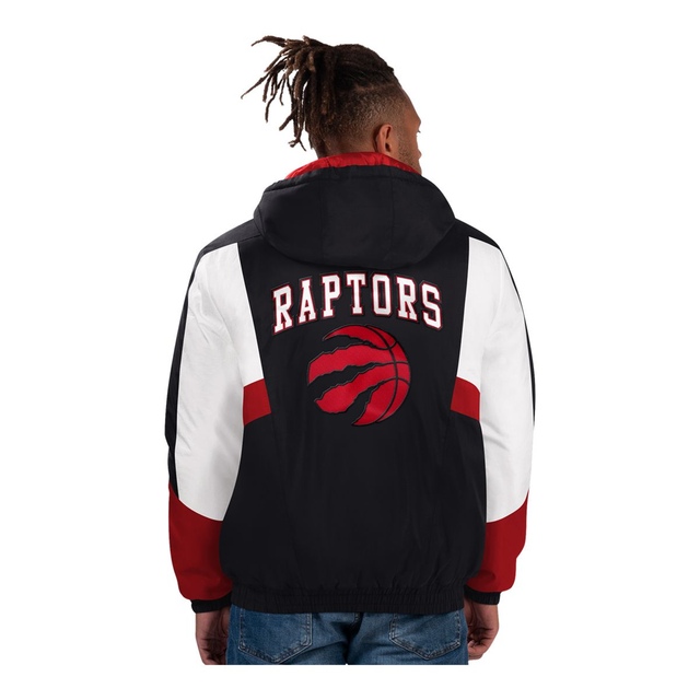The Toronto Raptors Starter Full Back Polyfill Jacket is a bold and cozy outerwear option for loyal fans. This jacket features a full back design with embroidered team graphics and logos, making it perfect for cheering on the Raptors. Polyester insulation provides reliable warmth during cold weather, while the snap front closure and ribbed cuffs and hem offer a comfortable, athletic fit. With its classic jacket styling and official Raptors branding, this is a must-have for representing your team pride.