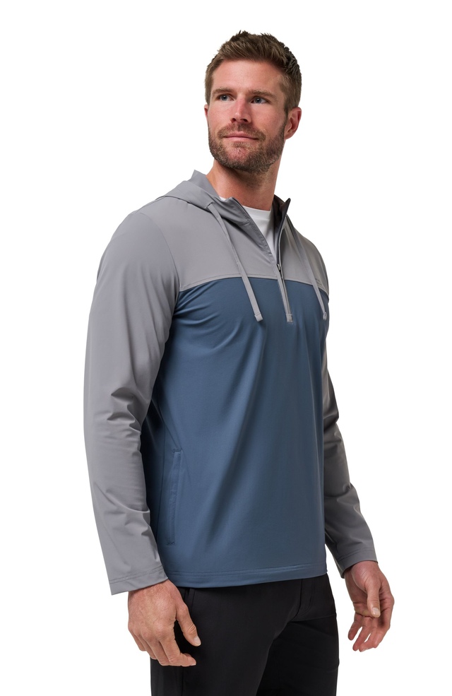 Comfort? Check. Style? Double check. The TravisMathew Men's Rail Transport Pullover Hoodie delivers performance features in a sleek, color-blocked design that’s built to move with you. With four-way stretch, single-welt front pockets, and a stacked TravisMathew logo on the chest, this tech quarter zip layers up easily for early tee times, gym days, or just leveling up your everyday look.