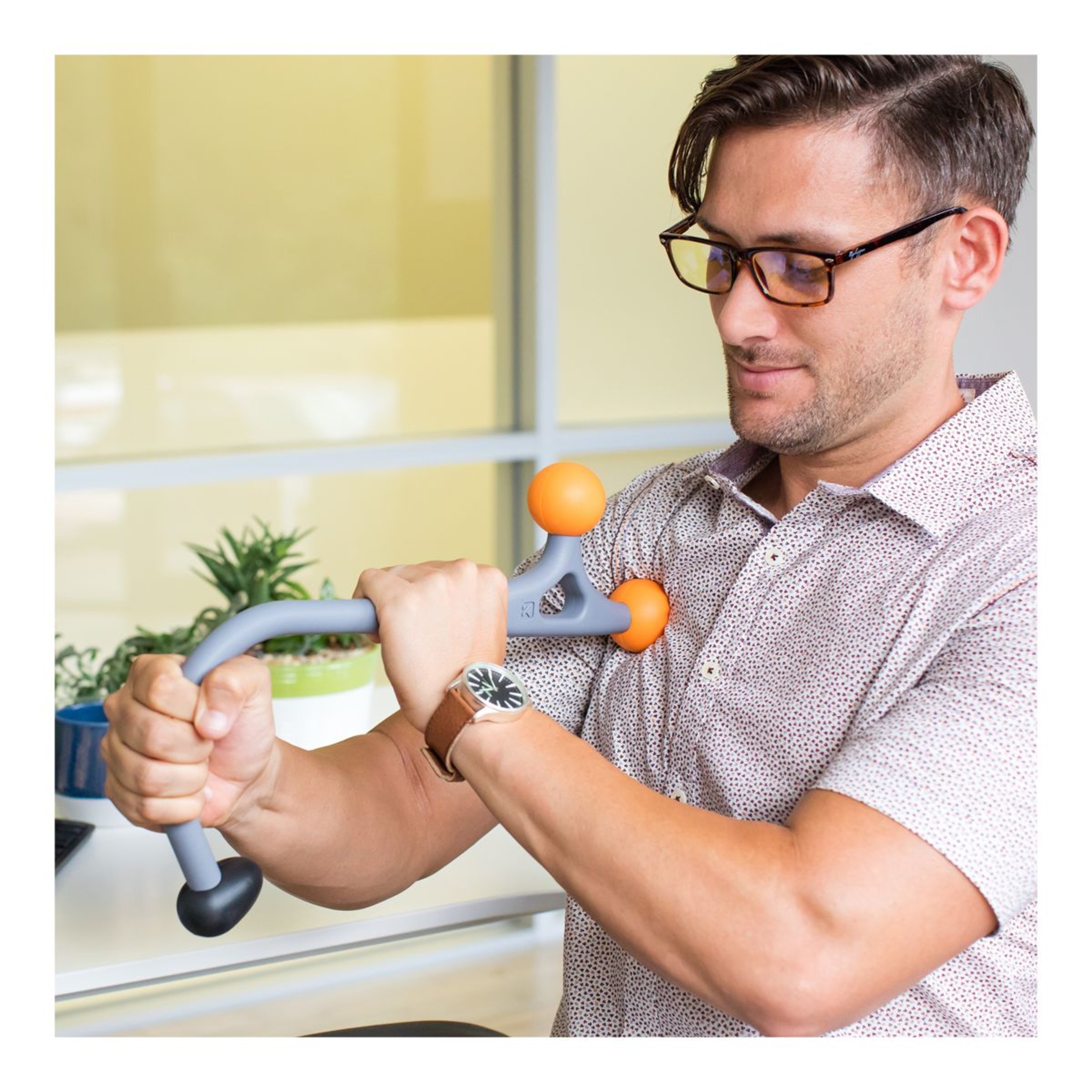 Versatile and simple-to-use massage tool for athletes, desk workers, travelers, seniors or anyone who suffers from muscular aches and pains
