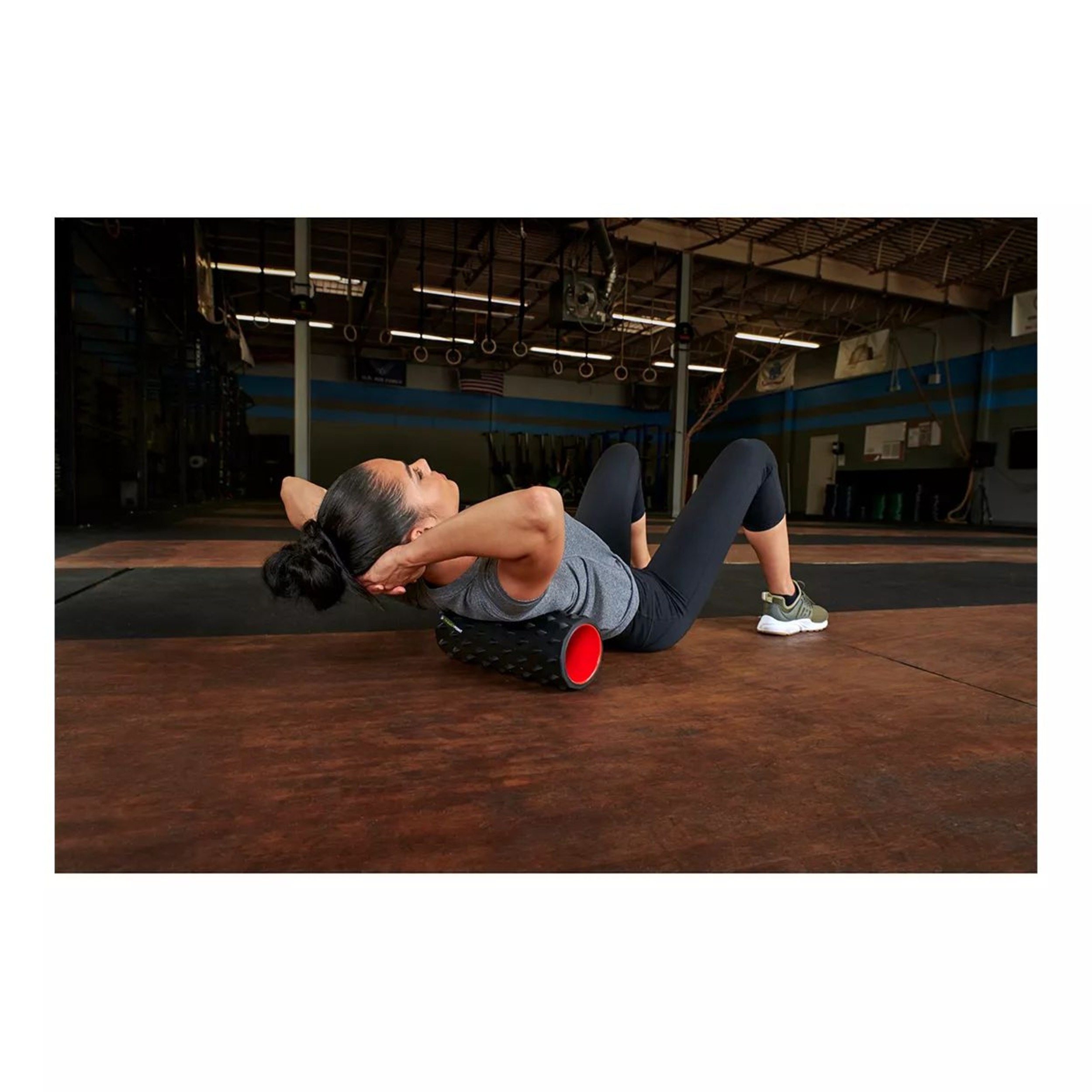 Foam roller featuring extra firm and high-profile nodules to dig deep into tissue to release tough muscle knots, helping reduce soreness and prevent injury