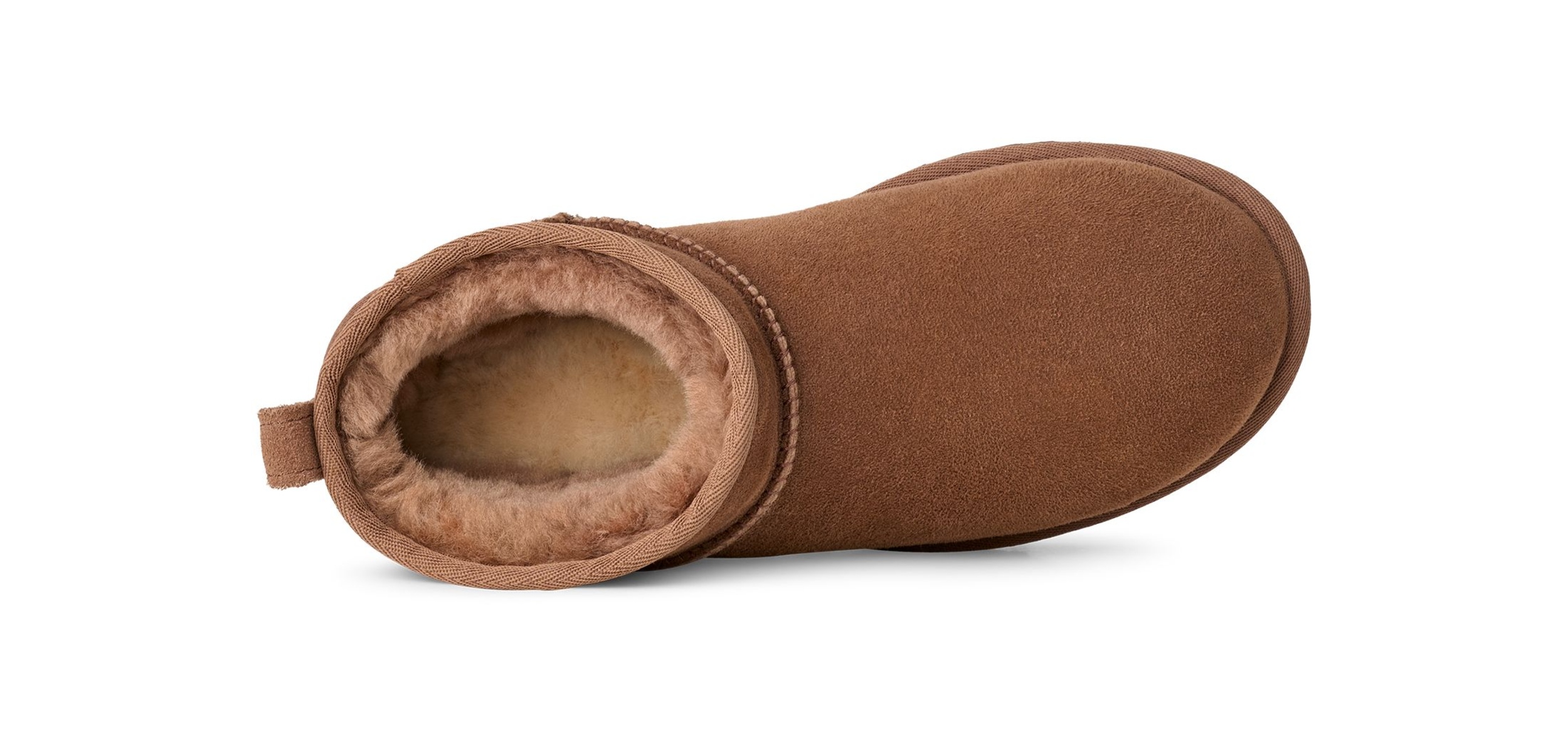 With a lower shaft height, the UGG Women's Classic Ultra Mini Boots were made to add ease and versatility. Crafted with a luxurious 17mm Twinface sheepskin upper and lining, these stylish boots provide superior warmth and comfort. Underfoot, the Treadlite by UGG™ or EVA outsole offers cushioned support for all-day wear.