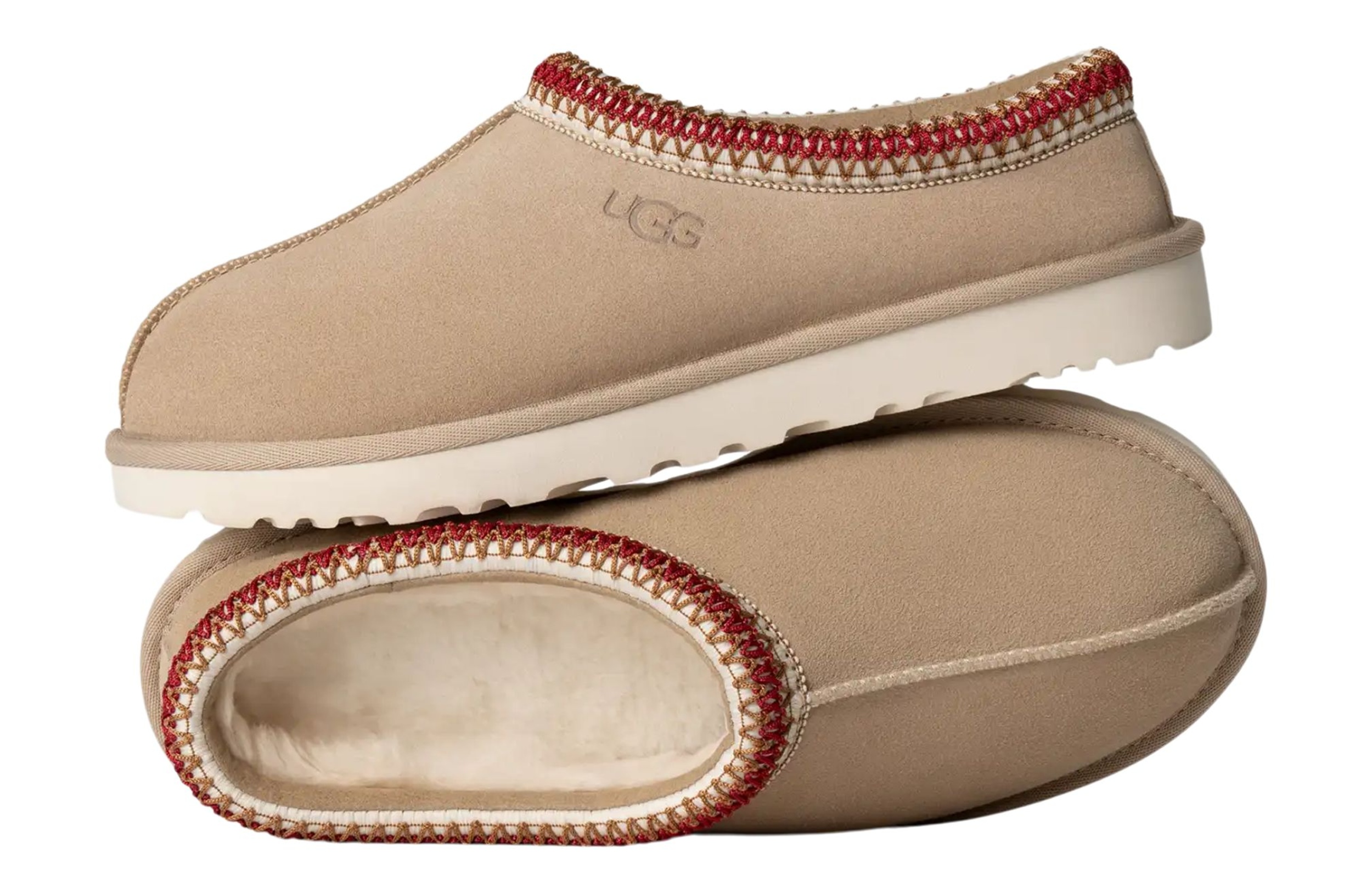 These UGG Women's Tasman Slip On Slippers feature durable indoor/outdoor outsoles, making it the brand's best-selling slipper style. Crafted from plush natural wool and soft suede, it features an embroidered braid detail and easy slip-on silhouette. The UGGplush™ upcycled wool or UGGplush™ lyocell-blend insole cushions every step. This cozy slipper supports women's empowerment through the HERproject initiative.