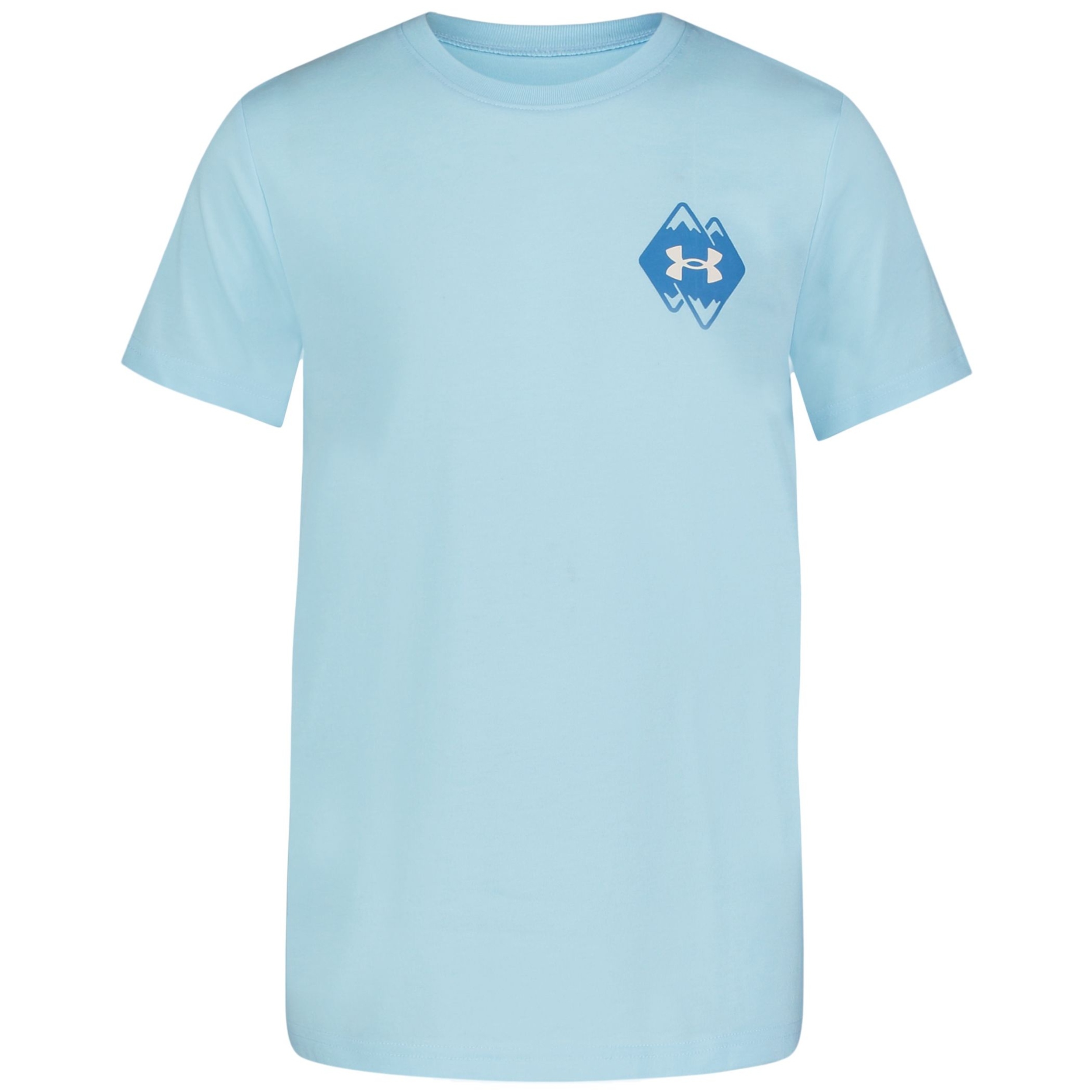 The Under Armour Boys' Mountain Logo T Shirt is the perfect adventure-ready style for active kids. Made from a soft cotton-blend fabric, this tee features moisture-wicking technology to keep him cool and dry. With a sporty ribbed collar, it combines comfort and style, perfect for all-day outdoor fun.