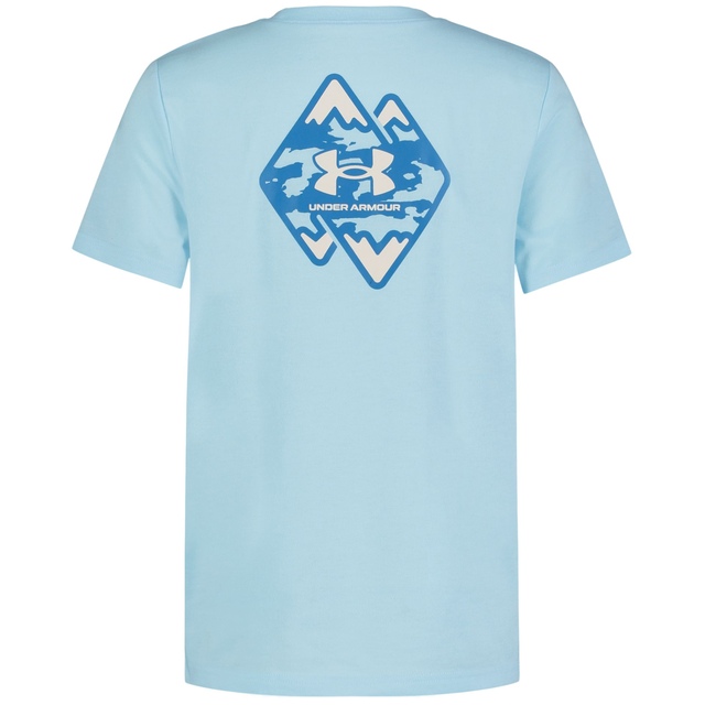 The Under Armour Boys' Mountain Logo T Shirt is the perfect adventure-ready style for active kids. Made from a soft cotton-blend fabric, this tee features moisture-wicking technology to keep him cool and dry. With a sporty ribbed collar, it combines comfort and style, perfect for all-day outdoor fun.
