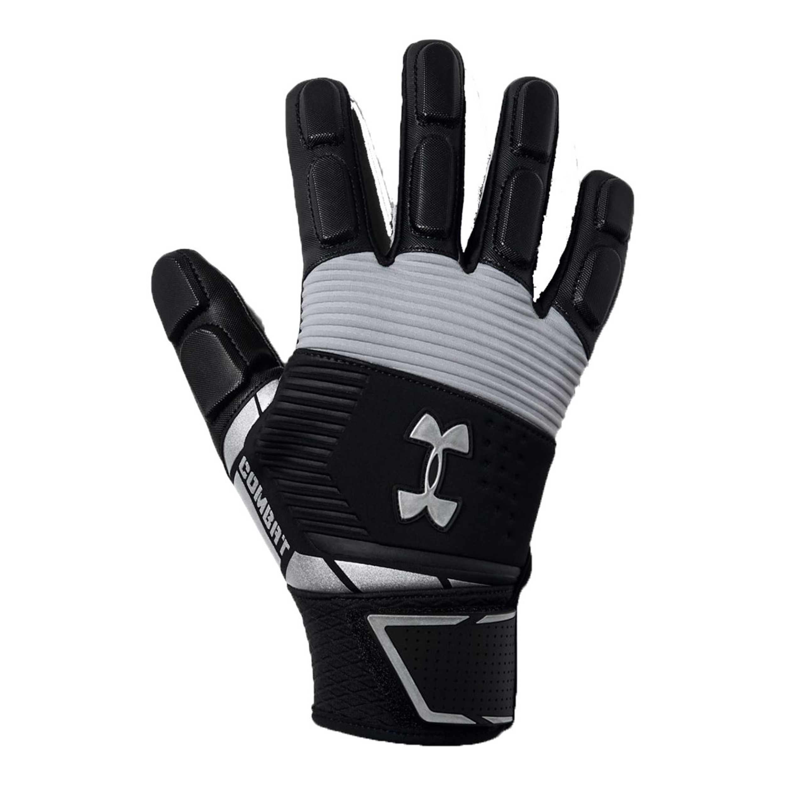 Designed for the big guys battling in the trenches, the Under Armour Combat NFL Padded Football Glove can handle your toughest opponents day in and day out. These full-finger padded lineman gloves feature custom-molded finger padding to provide an ideal balance of protection, comfort and flexibility. Lightweight and breathable ArmourMesh construction on the back of the hand offers ventilation and moisture-wicking benefits.