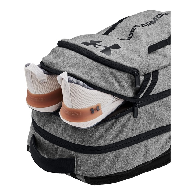 The Under Armour Hustle 6.0 Backpack features water-resistant Storm technology to keep your gear dry in any conditions. It includes a soft-lined laptop sleeve that fits laptops up to 16 inches and a secondary compartment that converts into a shoe or laundry pocket. This backpack is perfect for adventures or daily commutes.