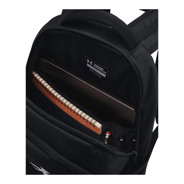 The Under Armour Hustle 6.0 Backpack features water-resistant Storm technology to keep your gear dry in any conditions. It includes a soft-lined laptop sleeve that fits laptops up to 16 inches and a secondary compartment that converts into a shoe or laundry pocket. This backpack is perfect for adventures or daily commutes.