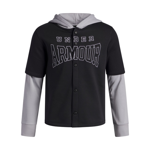 The Under Armour Kids' Icon Fleece Hoodie offers exceptional warmth and comfort with its ultra-soft, mid-weight cotton-blend fleece. Designed to keep your child cozy, this fleece hoodie features a brushed interior for added insulation, making it perfect for cooler days.