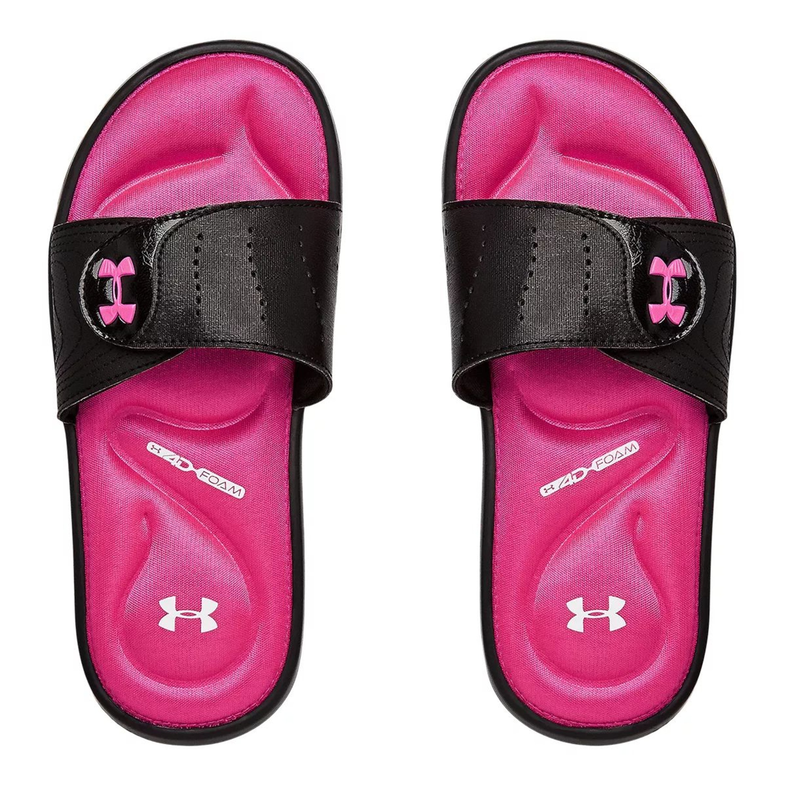 The Under Armour Kids' Ignite IX Sandals are designed for unparalleled comfort, featuring a dual-layer 4D Foam® footbed and anatomical contours for added cushioning. A re-engineered EVA outsole with traction pods ensures lightweight durability and comfort, making these Under Armour kids' sandals the ideal choice for your active young ones.