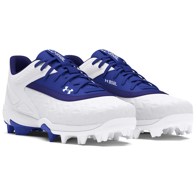 The Under Armor Kids' Leadoff 3.0 Low RM Baseball Cleats provide durable traction for young players. The molded cleat pattern on the full-length rubber outsole grips the diamond to allow quick starts and stops. The mesh upper promotes ventilation while synthetic overlays reinforce high-wear areas. An EVA midsole provides responsive cushioning to reduce foot fatigue during long games. The cleats have a low-profile silhouette for fast footwork around the bases. With a lightweight, breathable design, these baseball cleats help keep kids comfortable on the field.