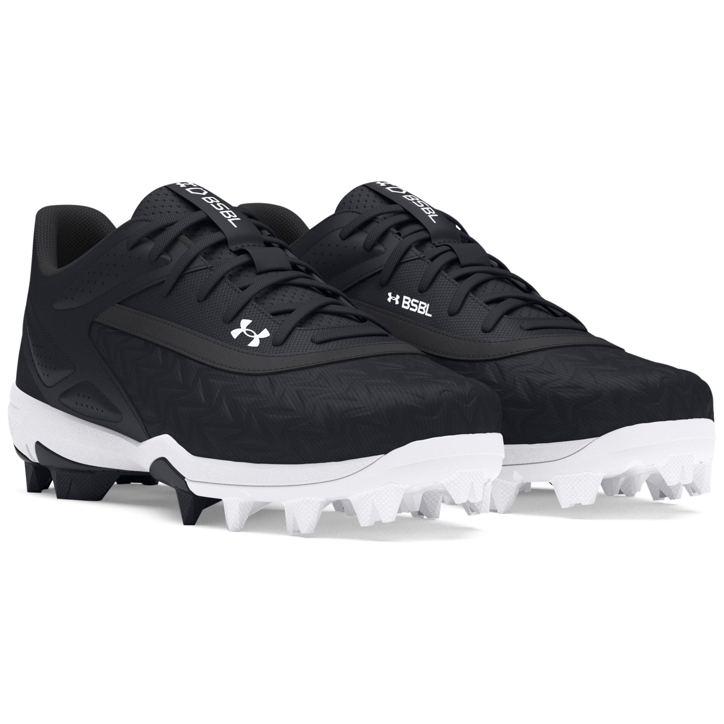 The Under Armor® Kids' Leadoff 3.0 Low RM Baseball Cleats are designed for young athletes on the diamond. These cleats feature a lightweight, breathable upper construction to keep feet cool and comfortable during play. The low-cut profile provides enhanced ankle mobility, while the molded rubber outsole delivers excellent traction and durability on the field. With their sleek design and performance-driven features, these Under Armor® cleats are perfect for helping kids elevate their game on the baseball diamond.