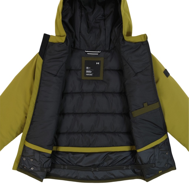The Under Armour Kids' Powderhound Waterproof Jacket keeps your little one warm and dry. Featuring advanced Storm technology, this jacket is both waterproof and breathable, ensuring comfort during outdoor activities. The adjustable hood, powder skirt, and cuffs provide a tailored fit.