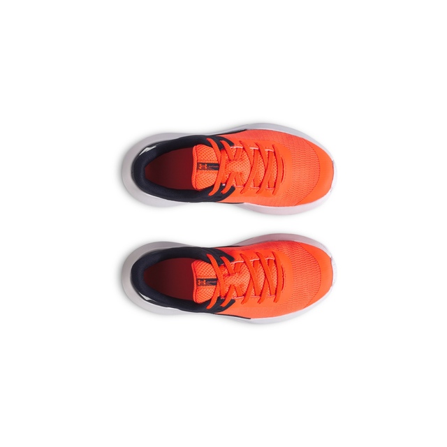 The Under Armour Kids' Pre-School Outhustle 2 Running Shoes are built tough for all-day play. Featuring a breathable mesh upper with molded leather overlays for ventilation and durability, these shoes offer lightweight performance. Stretch bungee laces provide a secure, easy fit, while the EVA sockliner and one-piece EVA midsole deliver comfort and cushioning. A durable outsole ensures long-lasting wear.