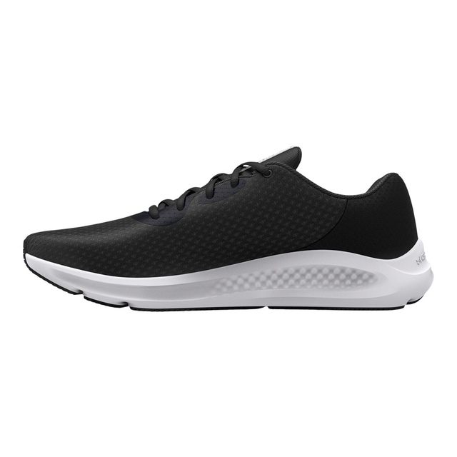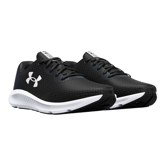 Train in confidence with the durable Under Armour Men's Charged Pursuit 3 Running Shoes. These ultra-comfortable shoes feature a breathable performance mesh upper and a foam-padded ankle collar for extra cushioning in every stride. The Charged Cushioning® midsole ensures responsiveness, while the durable outsole offers flexible traction.
