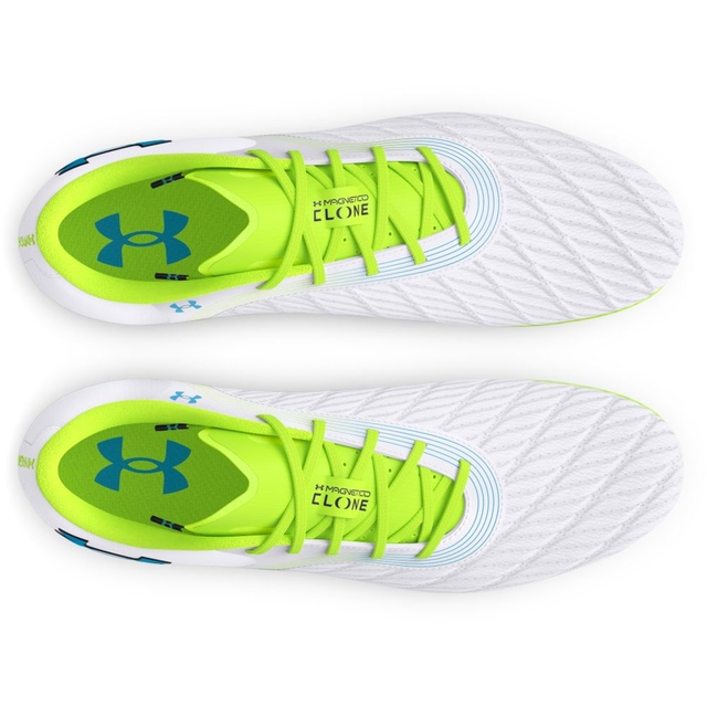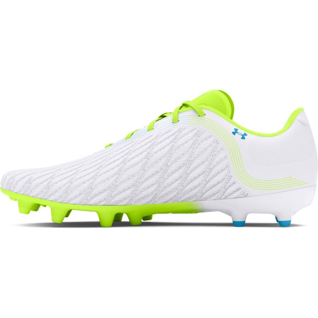 These firm ground cleats from Under Armour provide an extremely customized fit thanks to a unique internal layer of flexible material that molds to the shape and movements of your foot. The form-fitting toe box is incredibly soft for unmatched feel on the ball, while the innovative soleplate enhances your ability to change directions quickly and flexibly. The proprietary cleat design, with a mix of bladed and round studs, offers optimal traction on the pitch so you can dart and pivot in any direction with enhanced agility. Sporting these cleats, you'll maximize every touch and movement for total control on the field.