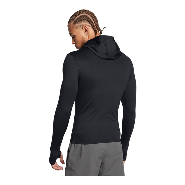 The Under Armour Men's ColdGear® Elite Scuba Hoodie uses ColdGear® Infrared technology to retain body heat without added bulk. Its dual-layer fabric provides warmth with a smooth, fast-drying exterior. The 4-way stretch design enhances mobility, while built-in thumbholes and a scuba neck hood offer extra coverage. Odour control technology keeps you fresh, making it ideal for cold-weather workouts.