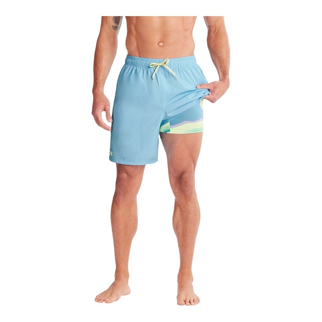 Make a splash in these quick-drying men's compression swim shorts from Under Armor. The lightweight 4-way stretch fabric allows unrestricted mobility in and out of water, while the fitted compression liner provides secure support for active swims. An elastic waist with adjustable drawcord ensures a custom fit, and UA's signature water-repellent construction keeps you light and fast even when wet. With their 7-inch inseam length and bold print, these shorts make a stylish statement poolside or seaside. Built for performance, comfort and style, they're a versatile pick for beach volleyball, swimming laps or just lounging lakeside.