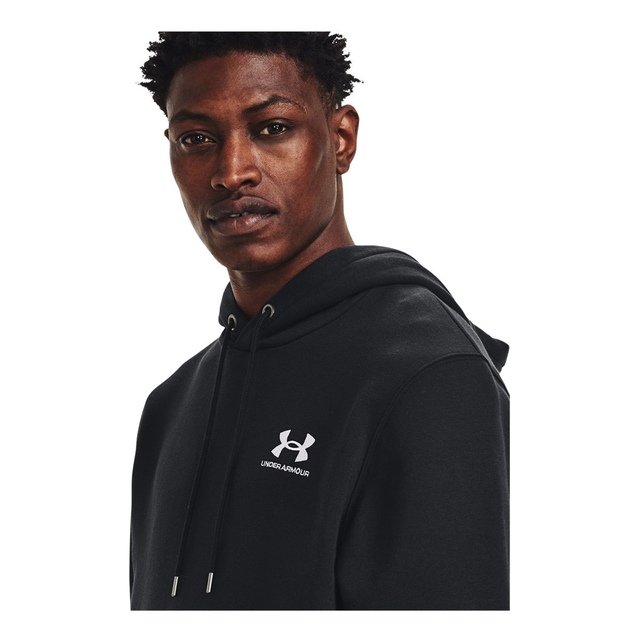 Under Armour Men's Essential Fleece LC Pullover Hoodie is designed for optimal pre-game warmth and focus. This ultra-soft, mid-weight cotton-blend fleece features a brushed interior for cozy comfort, a front kangaroo pocket for essentials and ribbed cuffs to keep the wind out.