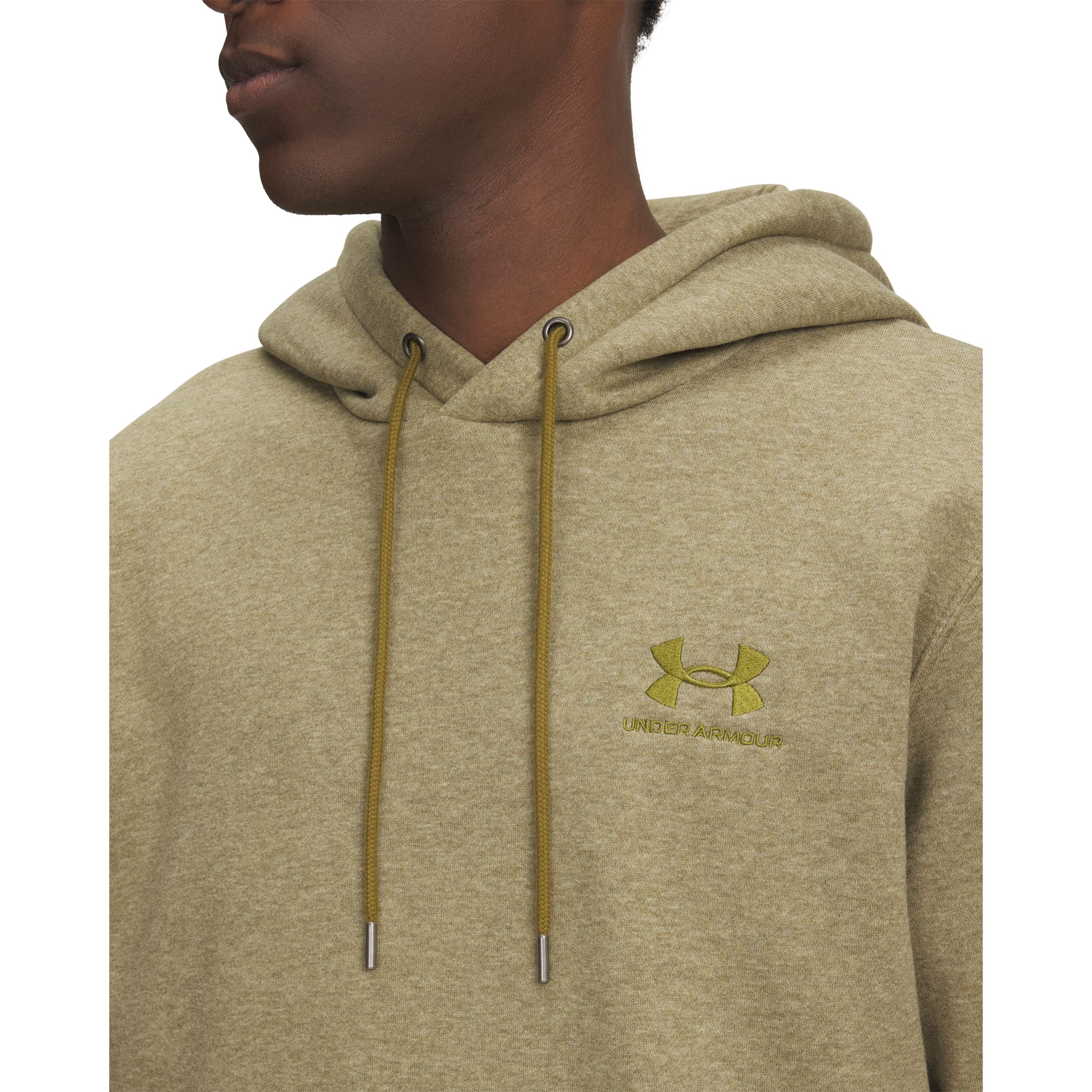 Under Armour Men's Essential Fleece LC Pullover Hoodie is designed for optimal pre-game warmth and focus. This ultra-soft, mid-weight cotton-blend fleece features a brushed interior for cozy comfort, a front kangaroo pocket for essentials and ribbed cuffs to keep the wind out.