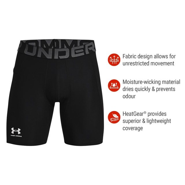 Stay comfortable in the Under Armour Men's HeatGear® Armour 6 Inch Shorts. Featuring super-light fabric for coverage without the bulk, strategic mesh for ventilation and anti-odour technology to keep you feeling fresh. They have a tight, second-skin fit and a supportive gusset design, and these Under Armour men's shorts are equipped with a handy drop-in pocket for on-the-go storage.