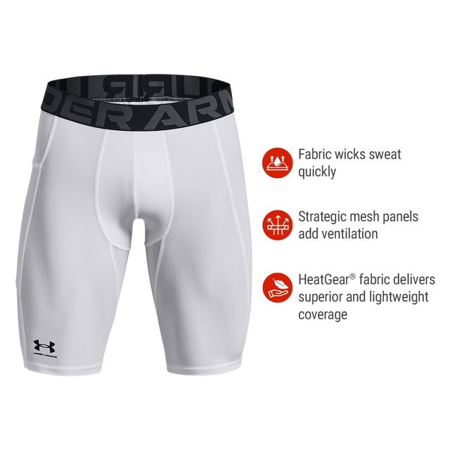 The Under Armour Men's HeatGear® Compression short comes with HeatGear®, Under Armour's original performance baselayer—the one you put on first and take off last. So Under Amour has made it extra comfortable by wicking sweat and stretching so you can move no matter what.
