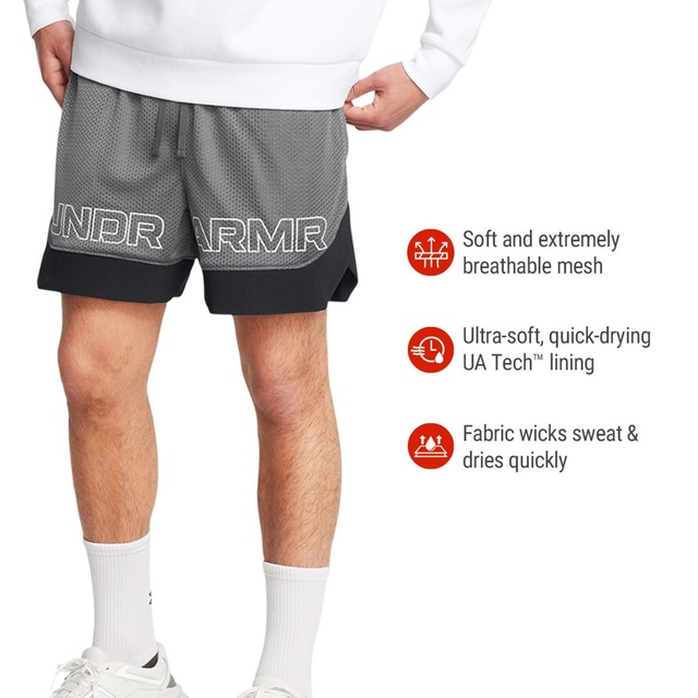 The Under Armor Men's Icon Mesh Elevated Shorts are designed with an extremely breathable all-over mesh fabric to keep you cool and dry during intense workouts. Featuring Under Armor's Techâ„¢ fabric lining for added comfort and coverage, these moisture-wicking and fast-drying shorts ensure you stay dry through even your toughest training sessions. An encased elastic waistband with an external drawcord provides a secure, adjustable fit, while open hand pockets offer convenient storage.