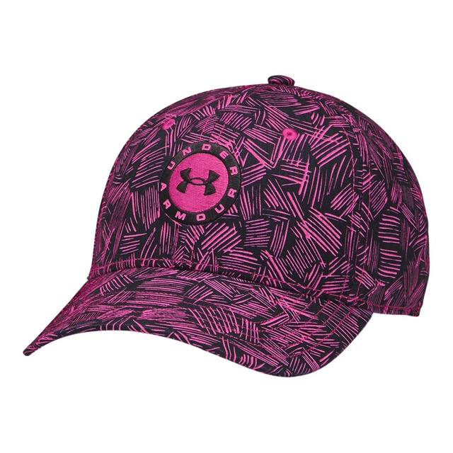The Under Armour Men's Jordan Spieth Tour Adjustable Hat features ArmourVent Technology for breathability on the golf course. The fabric wicks moisture and dries quickly, while the Iso-Chill sweatband and front panel lining help distribute body heat. This adjustable snapback hat offers customizable comfort and cooling performance for your game.