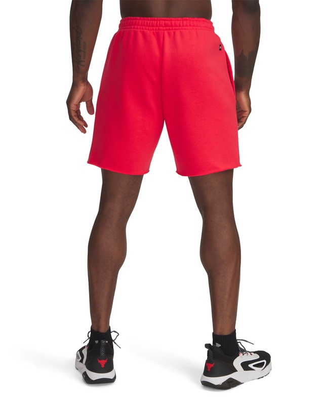The Under Armour Men's Project Rock Icon Fleece Shorts are designed for comfort and performance. Crafted from ultra-soft, mid-weight cotton-blend fleece with a brushed interior for added warmth, these shorts offer comfort for any activity. The encased elastic waistband with an internal drawcord ensures a secure fit, while open hand pockets and a raw-edge bottom hem complete the relaxed design.