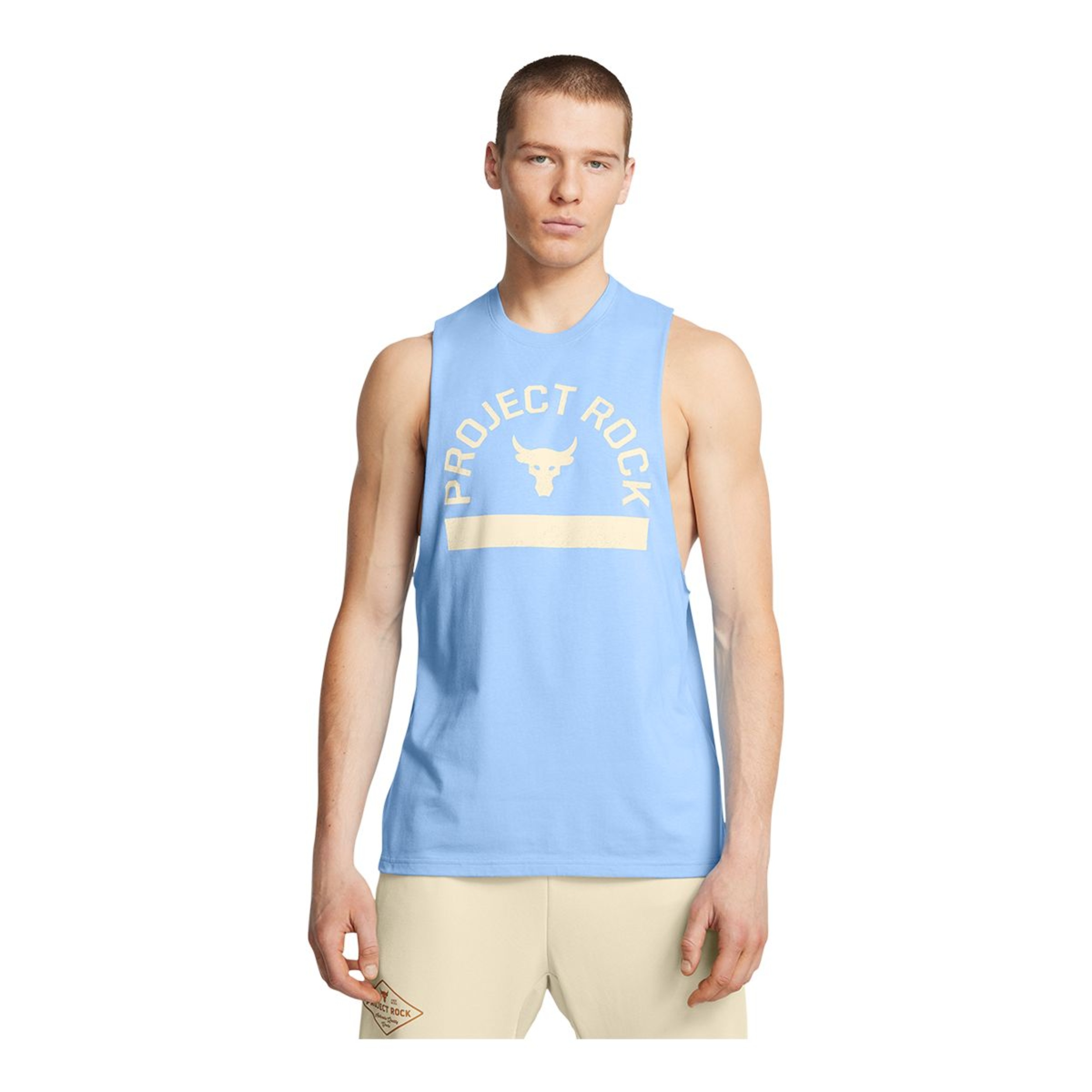 The Under Armour Men's Project Rock Payoff Graphic Tank is training gear built to help you push boundaries. Every piece in this collection was personally approved by Dwayne Johnson, the hardest worker in any room. Made with an extremely soft cotton-blend fabric, this athletic tank provides all-day comfort with a ribbed collar that stays in place. The Project Rock motivates you to conquer your fitness goals while staying in style.