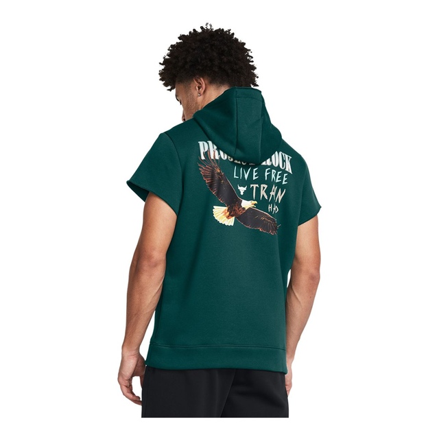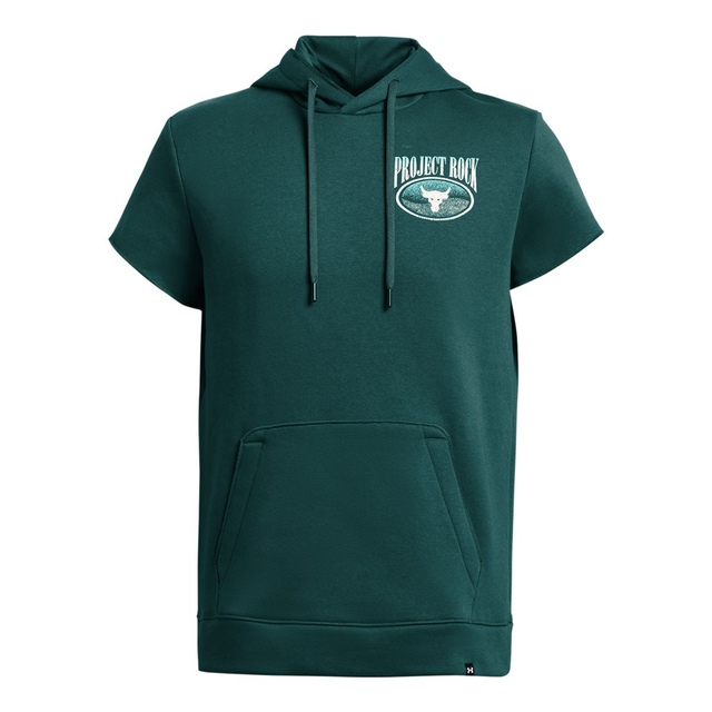 The Under Armour Men's Project Rock Short Sleeve Hoodie is designed with Dwayne Johnson's stamp of approval. Crafted from an ultra-soft cotton-blend fleece with a brushed interior for superior warmth, there's a kangaroo pocket for your essentials and stylish raw edge hems. This Under Armour hoodie is perfect for pushing past limits in the gym and beyond.