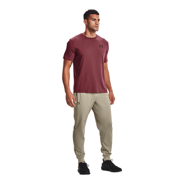 Under Armour Men's Sportstyle Jogger Sweatpants have a fuller cut that gives you room to move. Smooth on the outside and soft on the inside, the durable fleece fabric provides lasting warmth while a built-in Moisture Transport System efficiently wicks away sweat for quick-drying comfort. The rib-knit waistband with external drawcord offers a secure but flexible fit and multiple pockets allow for handsfree storage of small essentials.