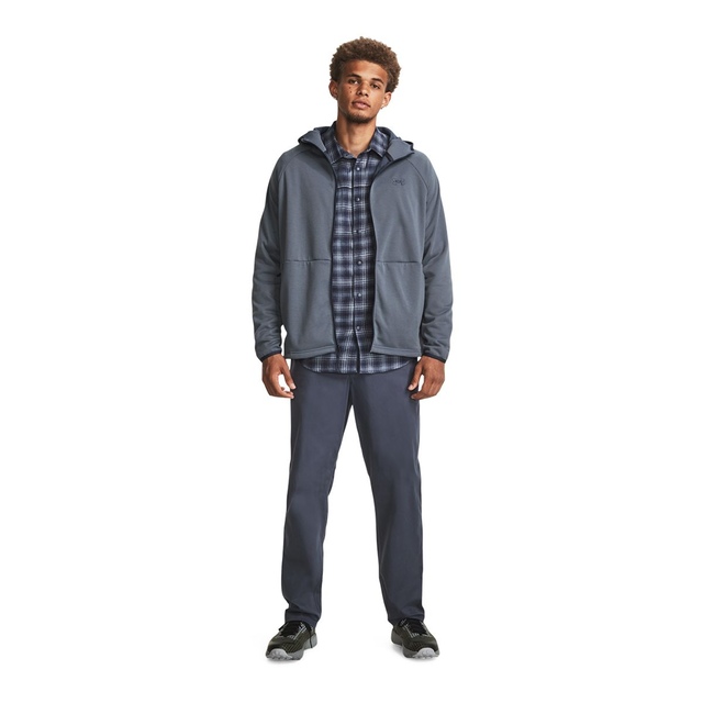 The Under Armour Men's Storm Twill Specialist Hoodie seamlessly blends the coziness of a sweater with the performance of Under Armour's stretchy, lightweight fleece and weather protection of a jacket. Crafted with durable twill fleece fabric featuring a brushed interior, this versatile hoodie keeps you warm and mobile. Under Armour's proprietary Storm technology repels water while allowing superior breathability, making it an ideal choice for unpredictable weather. Secure zip hand pockets offer convenient storage.