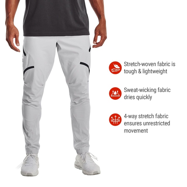 Stay dry and comfortable with the Under Armour Men's Unstoppable Cargo Pants. Featuring UA Storm technology, these pants repel water while maintaining breathability. The stretch-woven fabric is lightweight yet tough, providing durability for any activity. With 4-way stretch construction, you'll have unrestricted movement in every direction. The material wicks sweat and dries quickly, keeping you cool and dry throughout your workout or outdoor adventure.