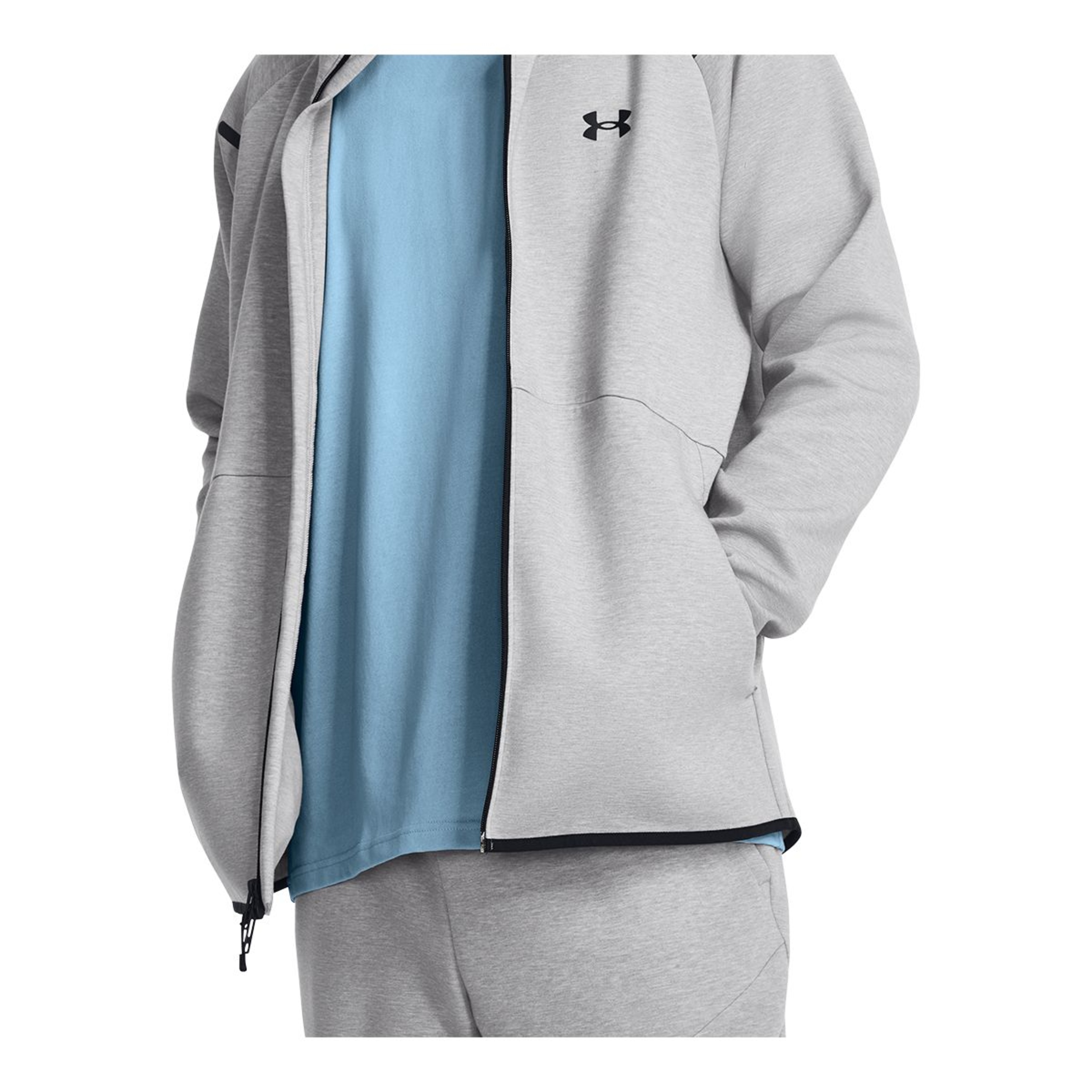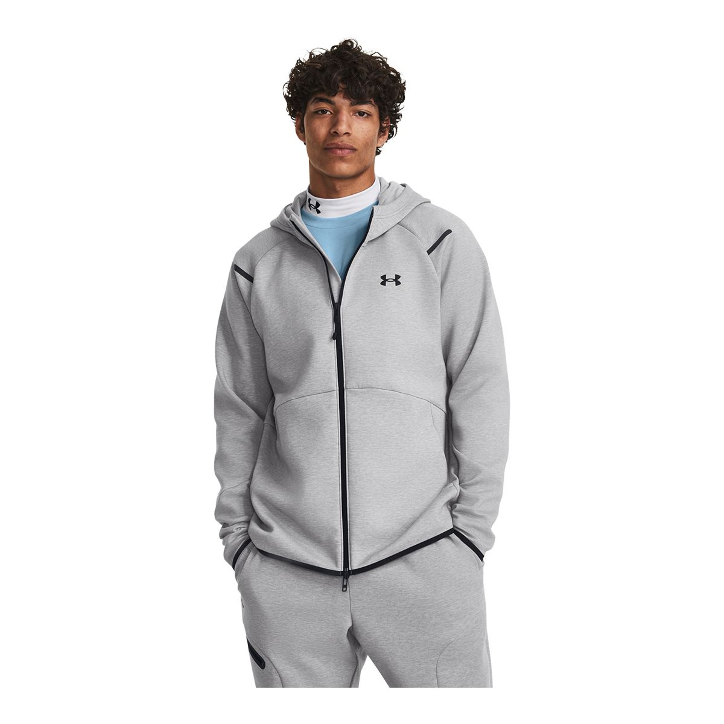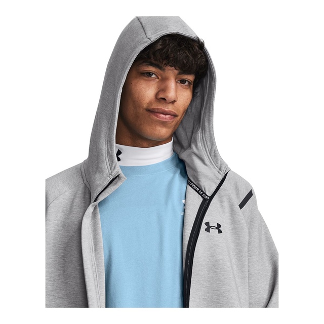The Under Armour Men's Unstoppable Fleece Full Zip Jacket keeps you comfortable and ready for action. Crafted from flexible performance fabric, it moves with you while providing breathability. Designed with sweat-wicking and quick-drying features, it keeps you dry during workouts. The double-knit fleece adds softness and stretch, ensuring comfort and mobility with every move.