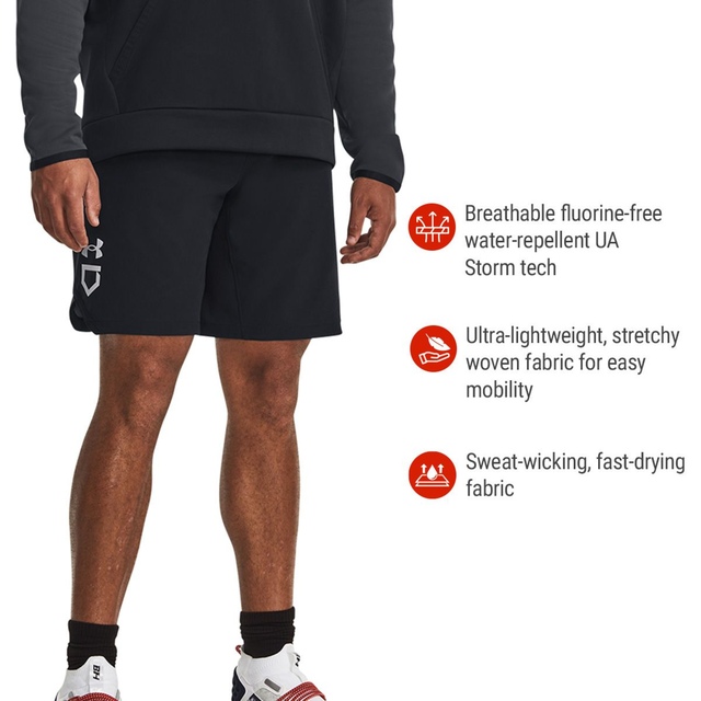 The Under Armor Men's Yard Ball Shorts are designed for intense baseball practices. These shorts feature a stretchy, lightweight woven fabric that delivers superior mobility and moisture-wicking to keep you cool and dry. With Under Armor's Storm technology, the water-repellent finish sheds rain without sacrificing breathability, making these shorts durable enough to withstand a full baseball season and more.