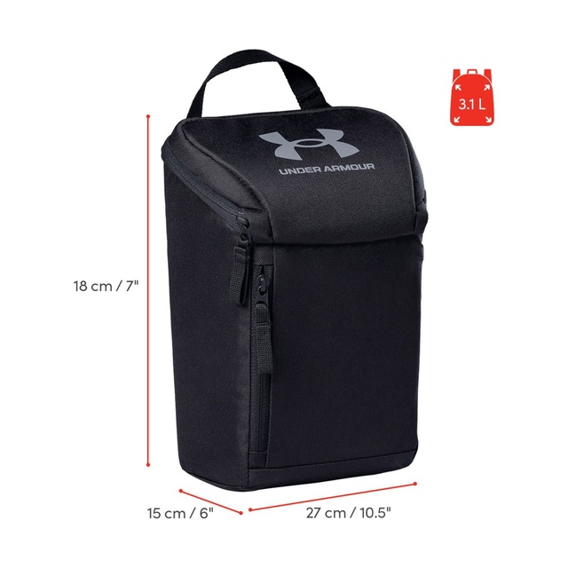The Under Armour Sideline Hard Shell Mini Lunch Box is an insulated carrier to keep snacks and drinks fresh and protected. The water-resistant exterior keeps moisture out, while the wide top opening and rigid lining make packing and cleaning a breeze. You can easily organize everything you need with plenty of storage options, including a large front pocket and a side mesh pocket for a water bottle. The built-in fence hooks and quick-release clip make it easy to carry or attach to your bag. This mini lunch box is made with BPA and lead-free materials, so you can confidently pack your lunch.