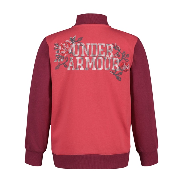 The Under Armour Toddler Kids' 4-6x Rival Bomber Jacket offers a perfect blend of comfort and sporty style. Made from a soft cotton blend, this kid's jacket ensures a smooth finish and freedom of movement. The printed graphics on the front and back add a stylish touch, while the ribbed collar, ribbed cuffs, and ribbed hem provide a secure fit.