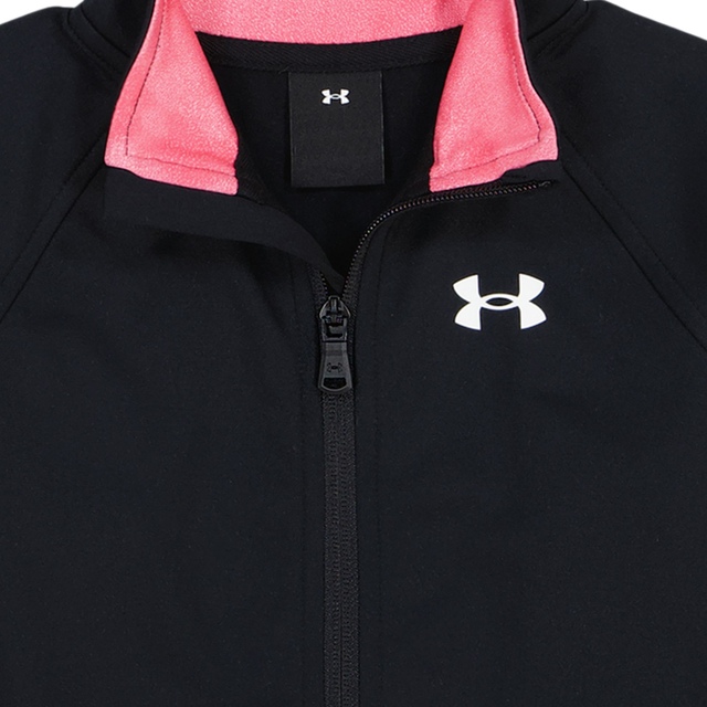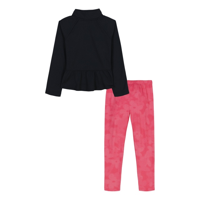 Keep your toddler comfortable and stylish with the Under Armour Toddlers' Rival Flutter Track Set. This kids clothing set includes a zip-up kids jacket with a peplum back and stretch toddler leggings, perfect for active play. The brushed-back tricot fabric ensures warmth and comfort.