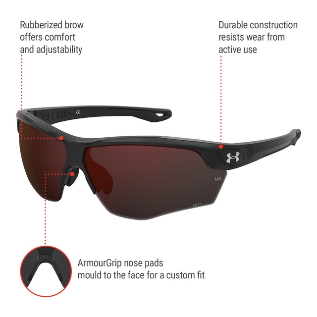The Under Armour Unisex Yard Dual Sunglasses are a stylish option for active lifestyles. Designed with comfort in mind, these sunglasses have a rubberized brow detail and UA ArmourGrip nose pads for ultimate comfort and adjustability. Their reliable construction ensures durability, making them a great choice for enhancing visibility and protection during your outdoor pursuits.