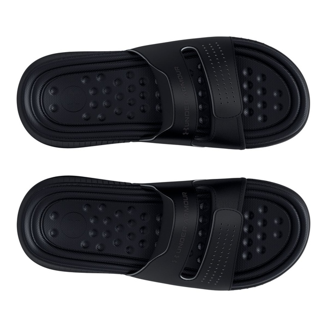 The stylish Under Armour Women's Ansa Studio Slides are engineered for ultimate locker-room comfort and durability. Featuring a unique "nest" shape with a soft plush liner, dual-strap design with adjustable neoprene and breathable perforations, these slides offer a secure, cushioned fit. The EVA footbed and outsole ensure greater traction in every stride.