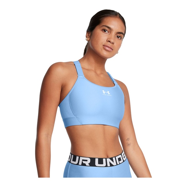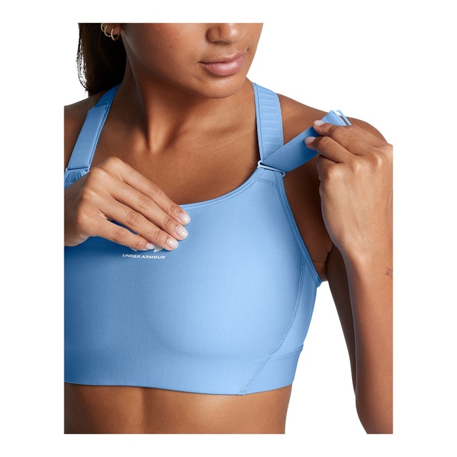 No doubling up. No pinching. No slipping. Just a held-in feel, smooth, adjustable straps you slide and secure with a hook, and the sweat-wicking power of HeatGear®. It's a compression bra you can actually go hard in.