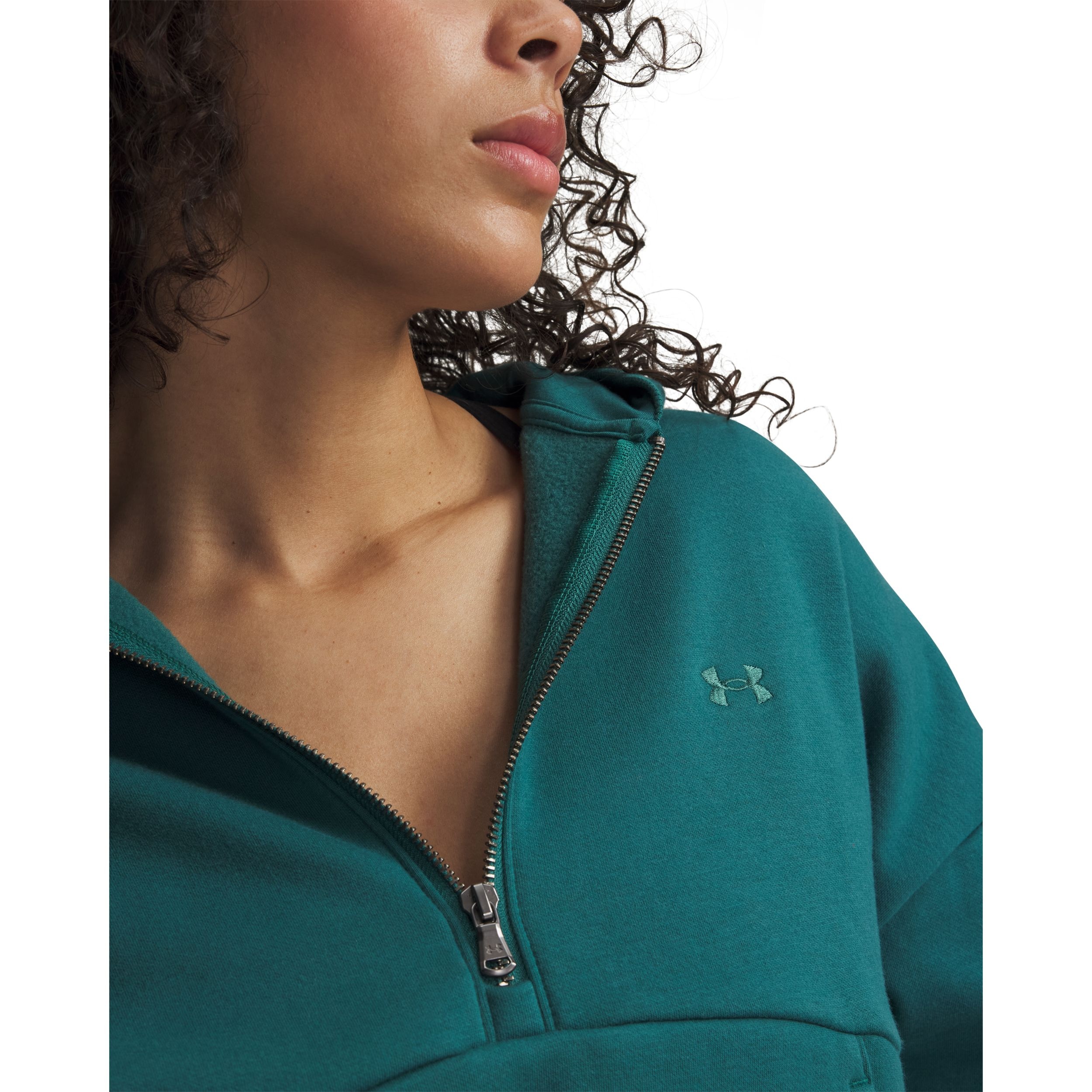 This Under Armour women's half-zip fleece top has the feel of your favourite old school fleece with a clean fit that looks just as good with gym gear as it does with street clothes. Its new low-shed fabric is engineered to reduce fibre shedding, making it definitively not old school. A brushed interior provides extra warmth and softness, and the generous half zip is perfect for layering.