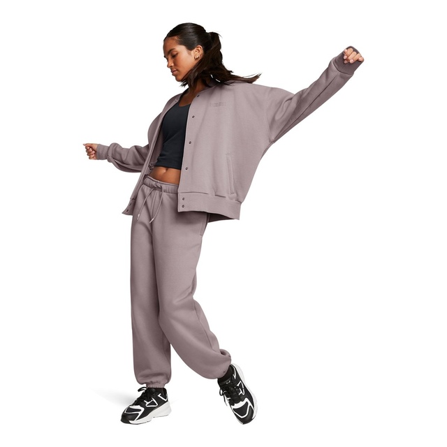 The Under Armor Women's Icon Fleece Varsity Jacket is a stylish and high-performance outerwear choice for active women. Crafted from a soft and cozy cotton-blend fleece fabric, this varsity jacket provides exceptional warmth and comfort. Under Armor's signature Moisture Transport System wicks away sweat to keep you dry during any activity. The classic varsity design combines style with functionality, making this jacket a versatile choice for the gym, running errands, or casual weekend wear.